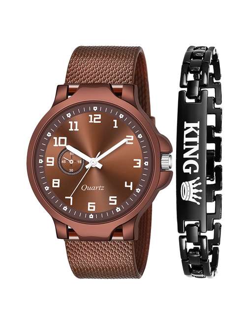 - » kajaru new fancy stylish - brown pu strap & black king bracelet combo watch