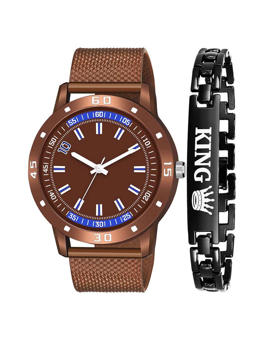 - » kajaru new fancy stylish - brown pu strap & black king bracelet combo watch