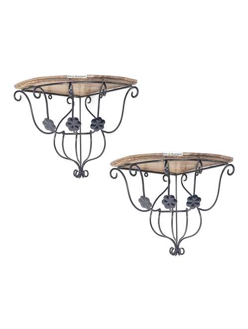 - » desi karigar beautiful wooden decorative corner wall hanging bracket shelf/shelves for living room/bed room decoration set of 2