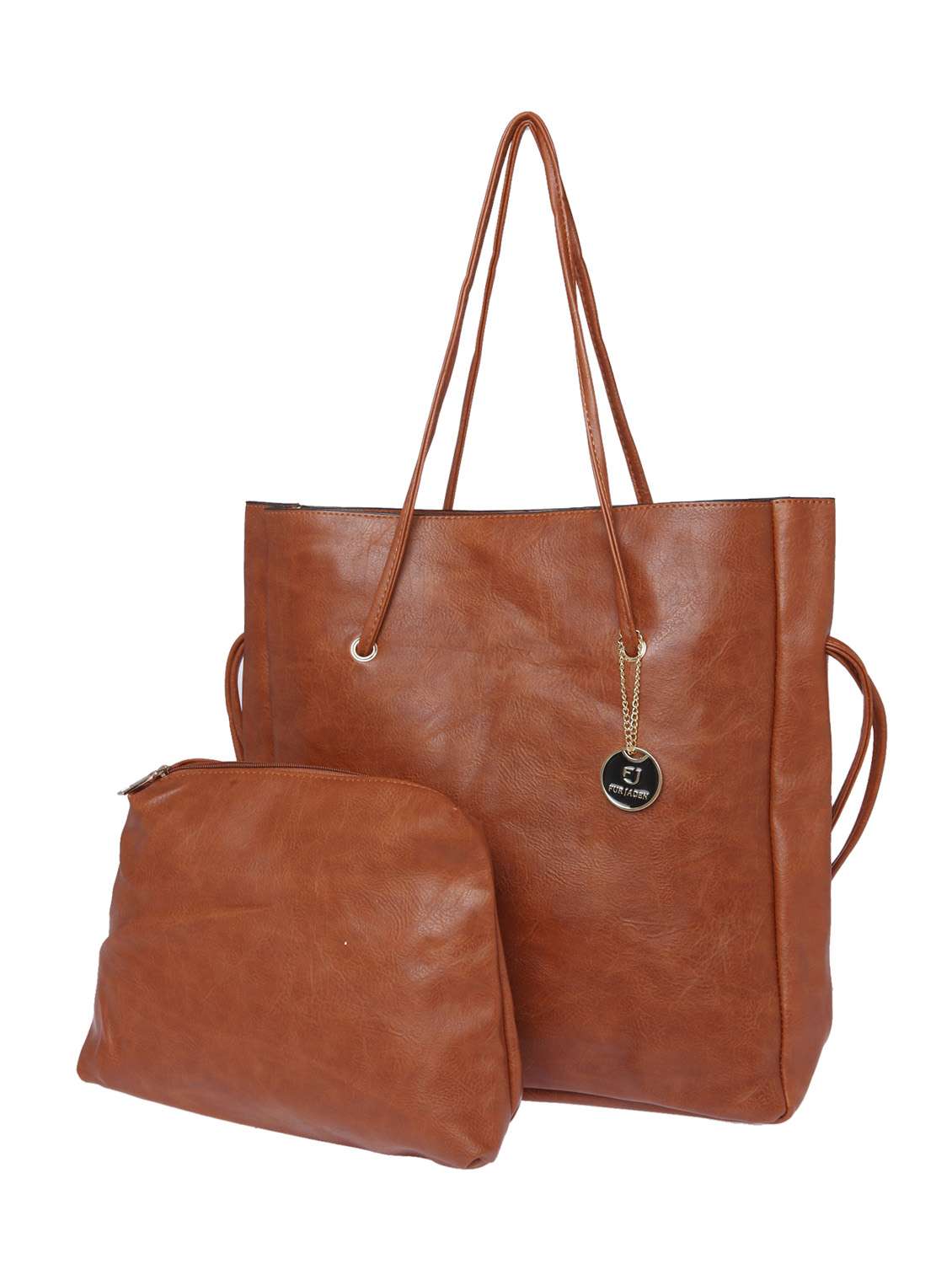 - » solid brown leatherette tote