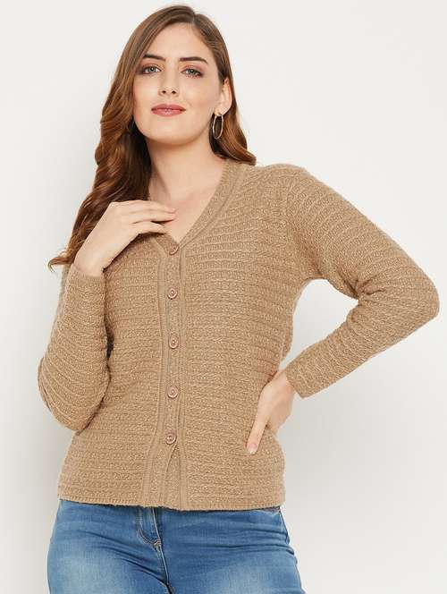 - » khaki self designed woolen cardigan