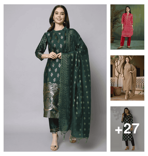 women three quarter sleeve kurta pant with dupatta set