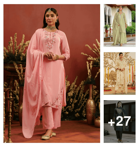 women solid with work three quarter sleeve kurta pant with dupatta set