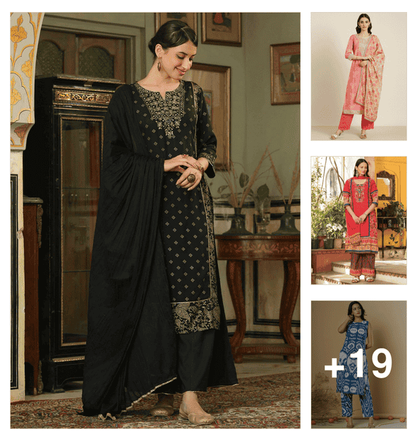 women solid with work three quarter sleeve kurta pant with dupatta set