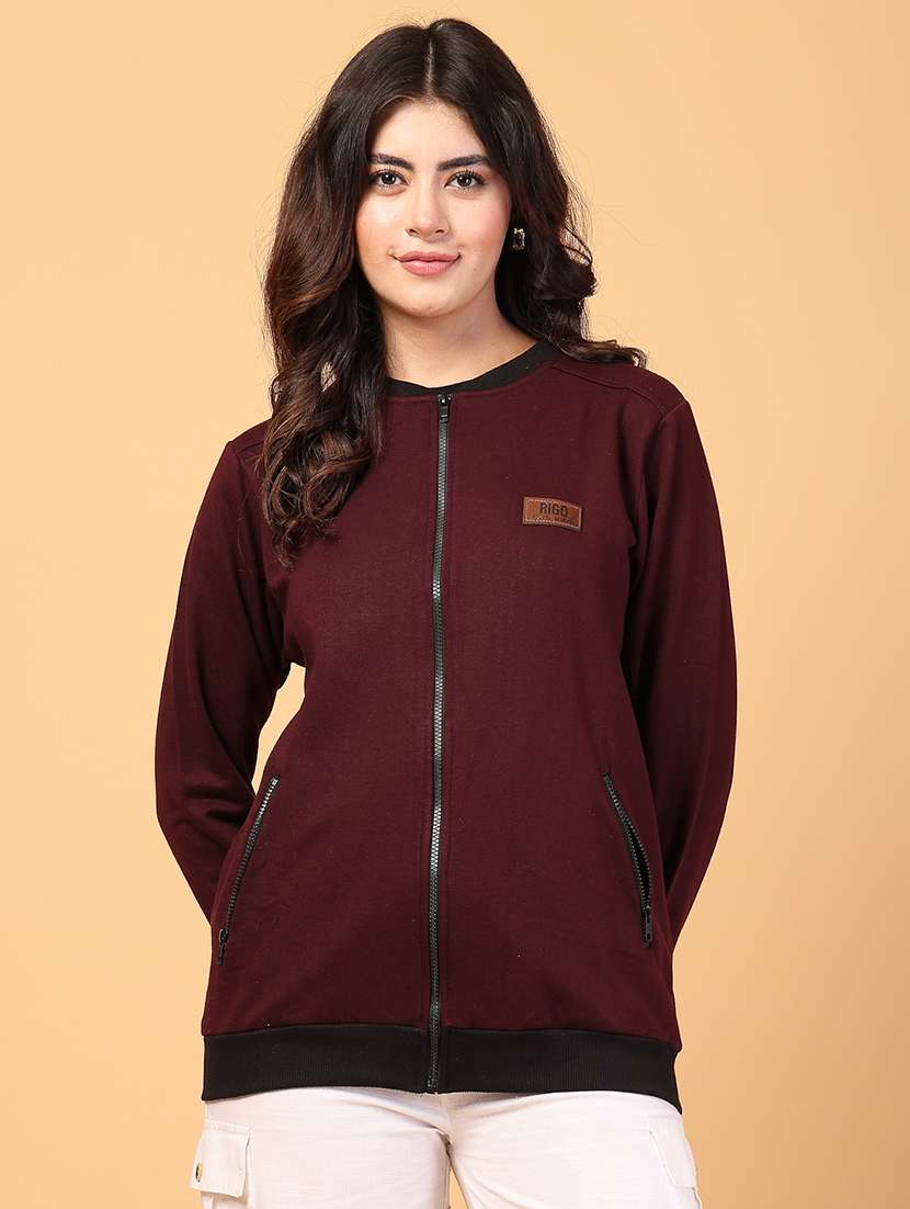 Rigo Women Wine Solid Fleece Bomber Jacket