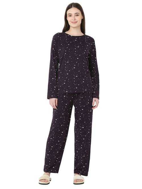 - After a long tiring day, slip into something homely, shop for the all-new collection of nightwear sets for ladies in S sizes and gorgeous purple designs and colors.