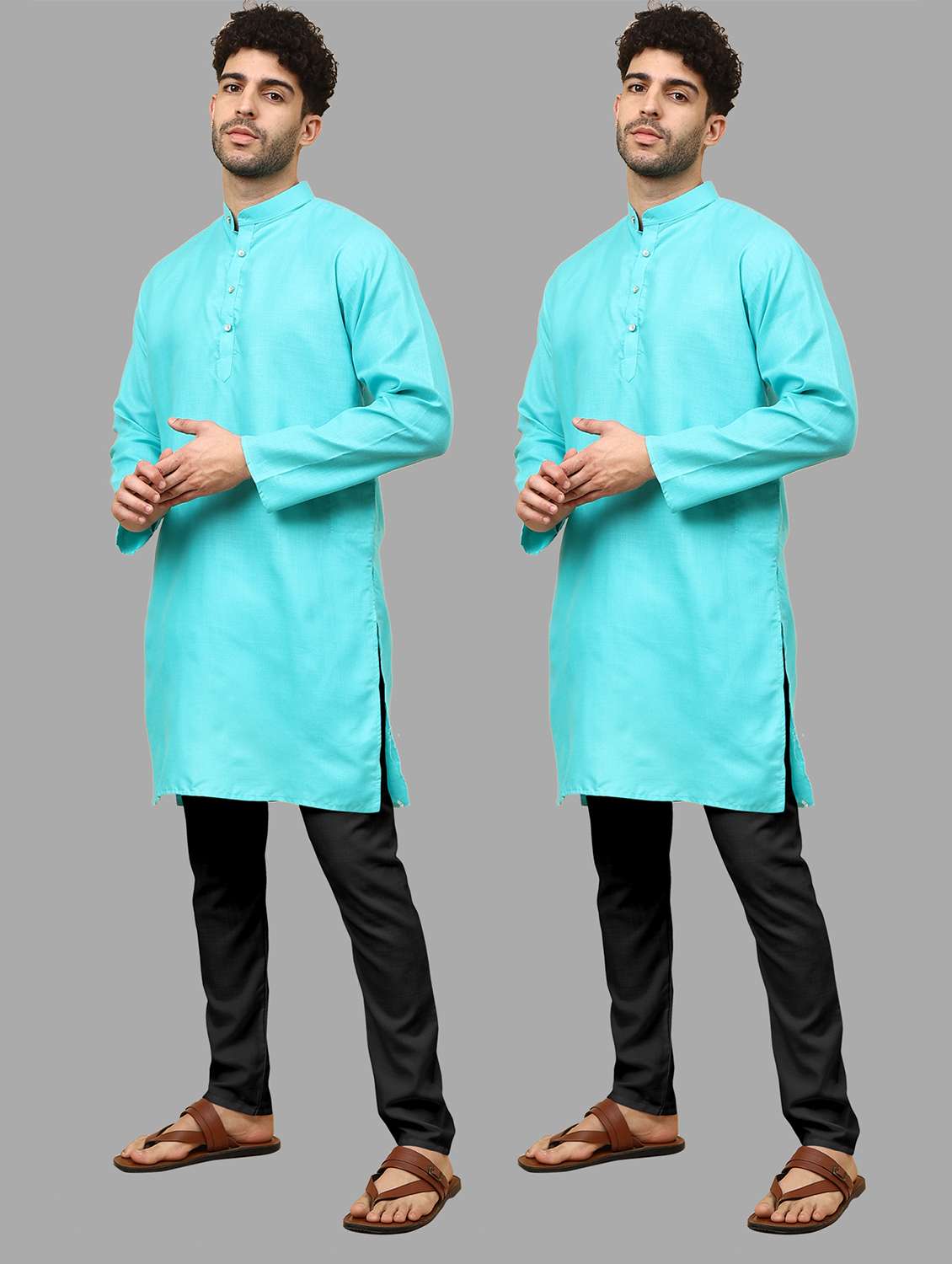 Pack Of 2 Mens Simple Stright 2 Kurta And 2 Black Pyjama Only