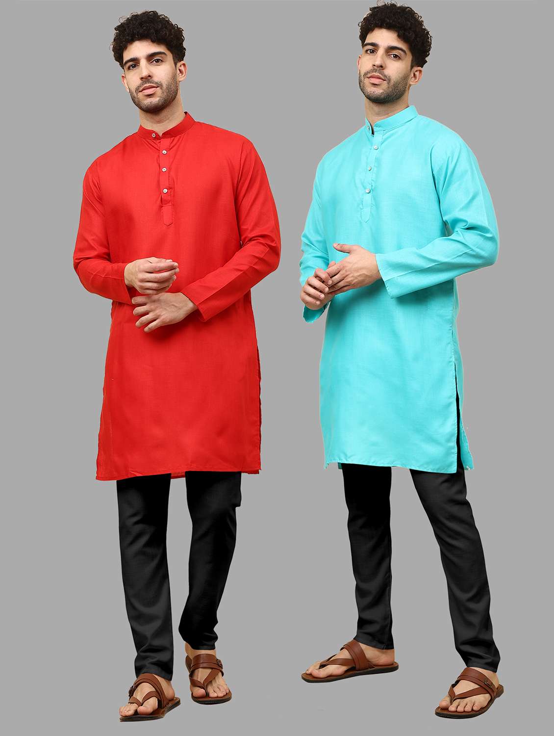 Pack Of 2 Mens Simple Stright 2 Kurta And 2 Black Pyjama Only
