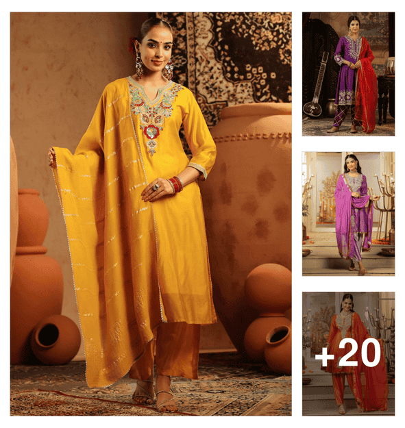 women solid with work three quarter sleeve kurta pant with dupatta set
