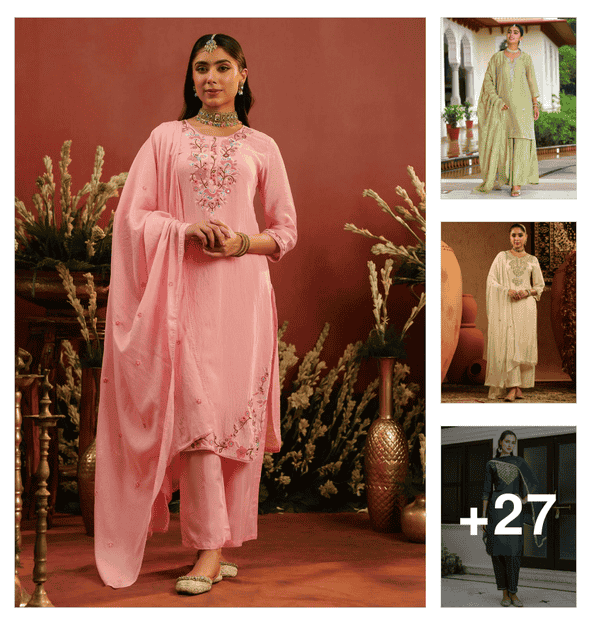 women embroidered three quarter sleeve kurta pant with dupatta set