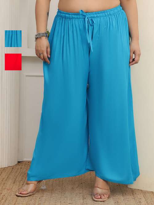 women pack of 2 solid flared palazzo