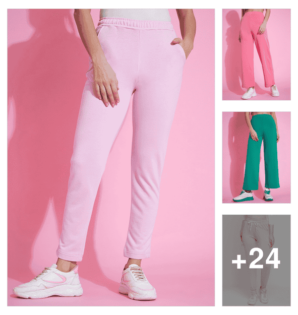 women pink solids track pant