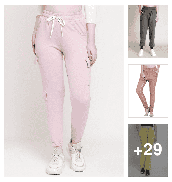 women pink solids track pant