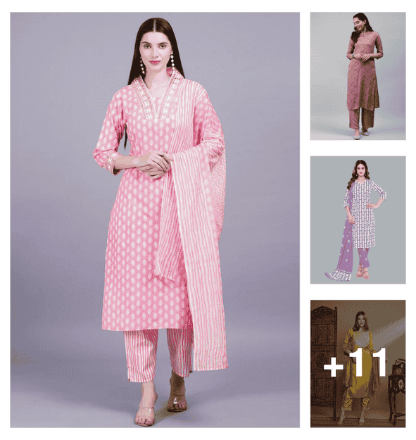 globus women black scalloped hem bell sleeves floral embroidered kurta & straight pant festive set