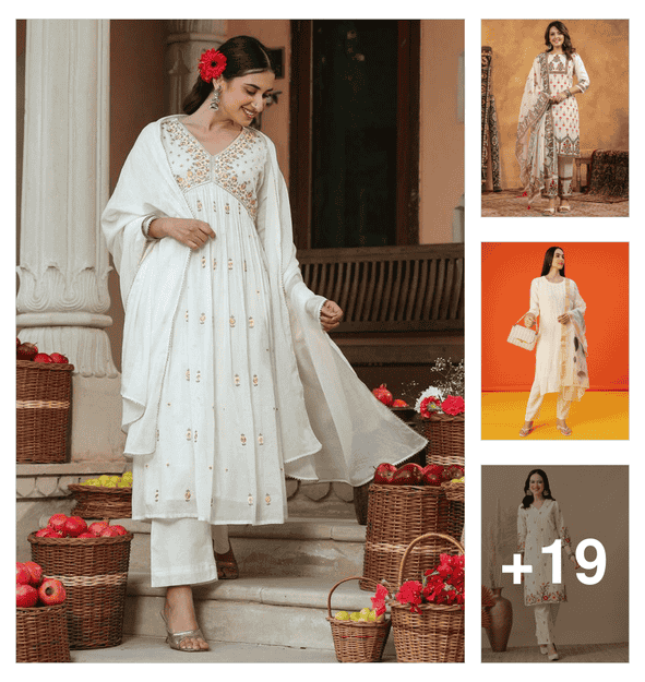 globus women black scalloped hem bell sleeves floral embroidered kurta & straight pant festive set