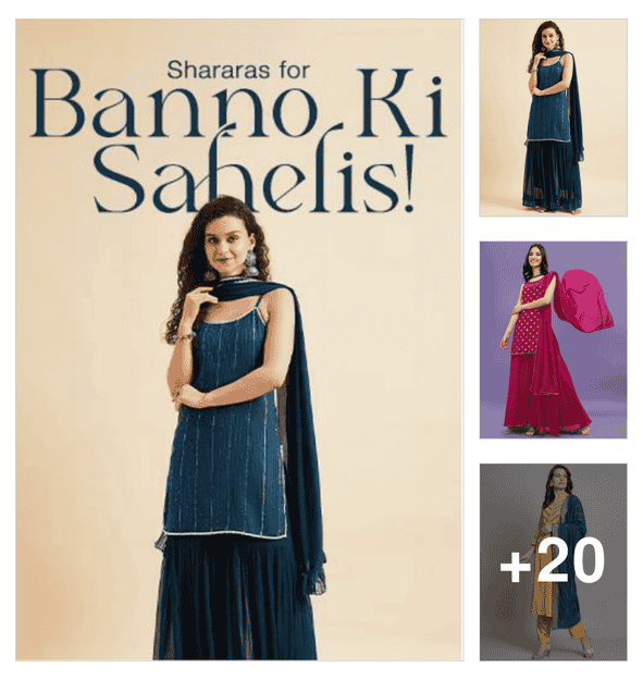 globus women black scalloped hem bell sleeves floral embroidered kurta & straight pant festive set