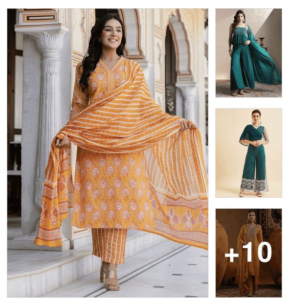 women plus size floral three quarter sleeve kurta pant with dupatta set