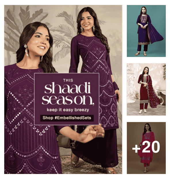 globus women maroon embroidered v-neck allover gold foil printed anarkali kurta with narrow pants festive set