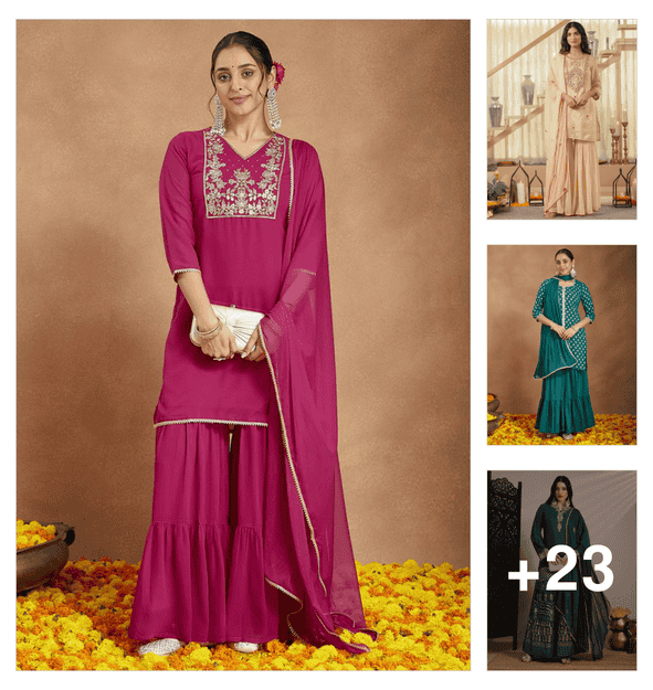 women three quarter sleeve anarkali kurta pant with dupatta set