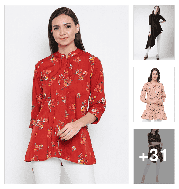 You will find various options of tunics for women in terms of silhouettes such as regular, shirt, high-low, A-line, plus, asymmetric, blouson, and wrap.