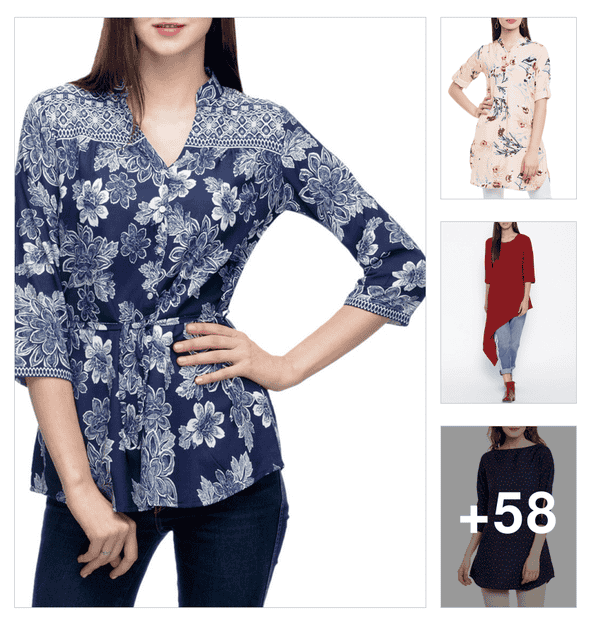 You will find various options of tunics for women in terms of silhouettes such as regular, shirt, high-low, A-line, plus, asymmetric, blouson, and wrap.