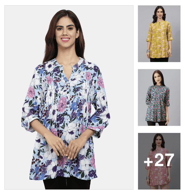 women floral print a line tunic
