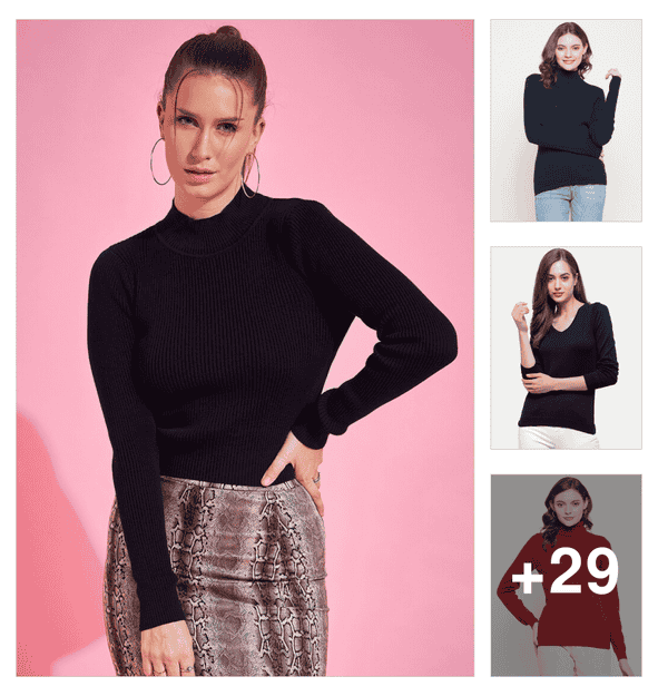 globus women blue self design high neck drop shoulder long sleeves acrylic knitted pullover sweater