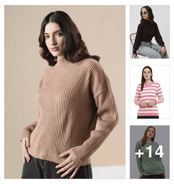 globus women blue self design high neck drop shoulder long sleeves acrylic knitted pullover sweater
