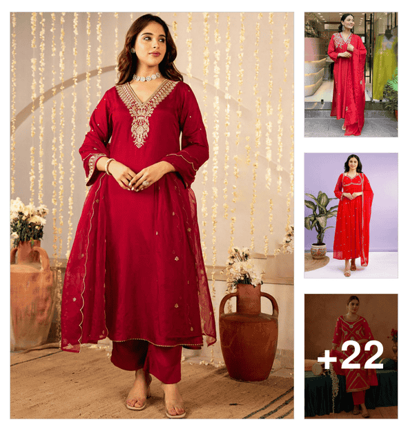 globus women maroon embroidered v-neck allover gold foil printed anarkali kurta with narrow pants festive set