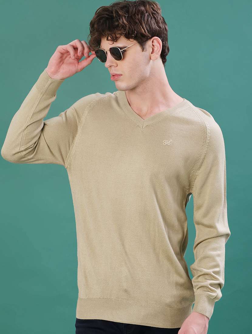 men solid long sleeve regular fit pullover