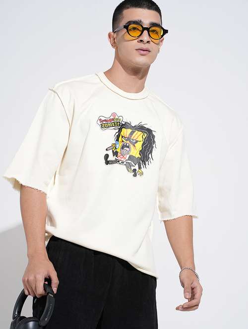 SHOWOFFFF Edition Men's Graphic Print Cream Round Neck Oversized T-Shirt