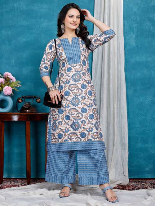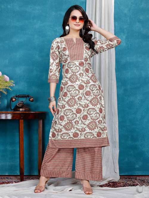 - Find gorgeous sets of ethnic wears in trending designs in cream colors suitable for casual wear of occasions.