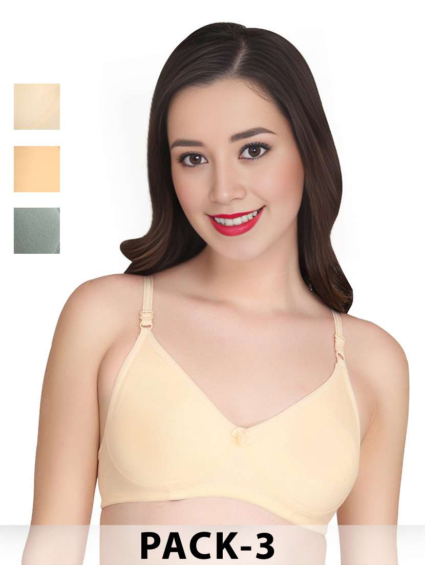 Liigne Women Everyday Non Padded Bra (Pack Of 3) - Made of Pure Cotton Full Coverage Non Wired Pushup Soft Cup for T-Shirt Saree Dress Sports Garment for Daily Use Everyday