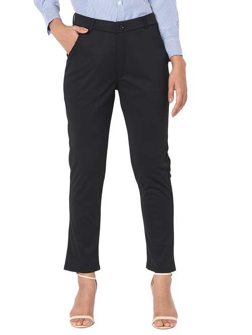 Feel compact & comfortable all day long. These ankle legth formal trouser in subtle mouse color will give you sharp look. it's high waist fitting, cotton lycra fabric will make you feel easy.