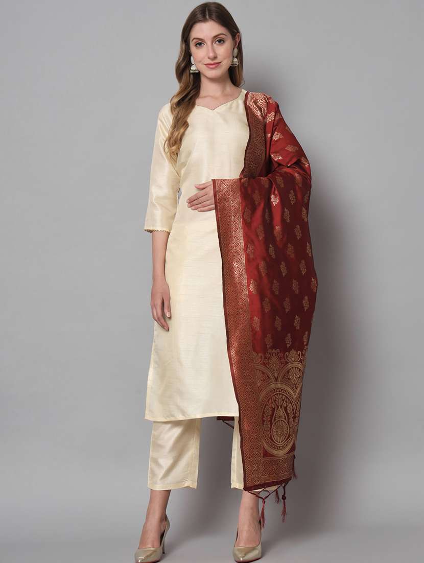 - Find gorgeous sets of ethnic wears in trending designs in cream colors suitable for casual wear of occasions.