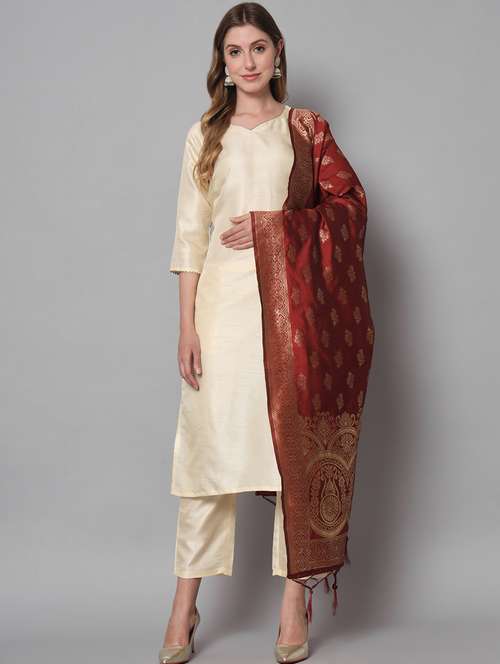 • Find gorgeous sets of ethnic wears in trending designs in cream colors suitable for casual wear of occasions.
