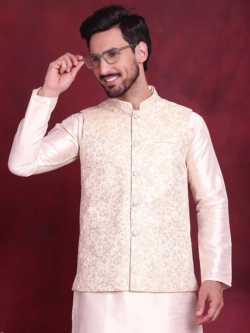 - » men self design silk blend nehru jacket