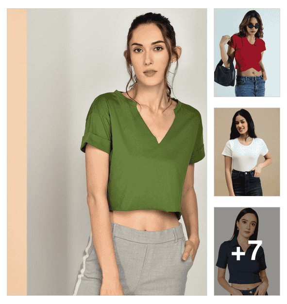women short sleeves solid crop top