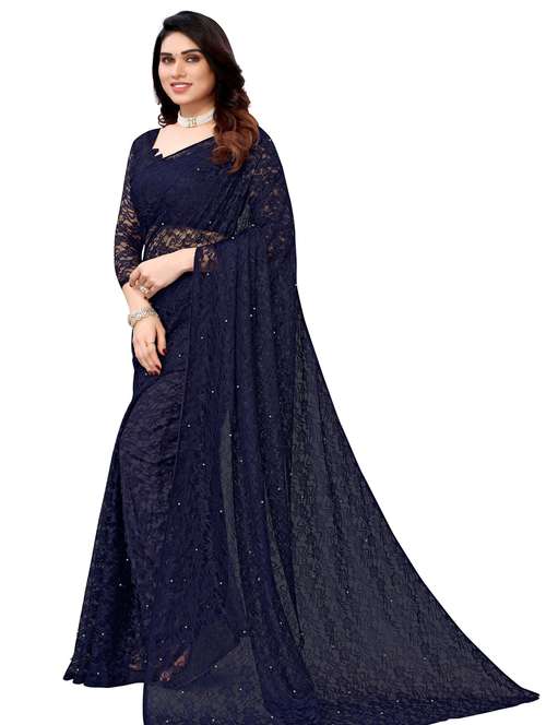 Suali Women's Dark Blue Rasal Net Weaved Saree With Unstitched Blouse(FL-SSC-ABIRA, Free Size)
