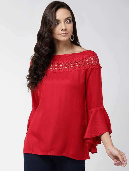 - Opt for this top made up of rayon material and get it in a boat neck neck design.