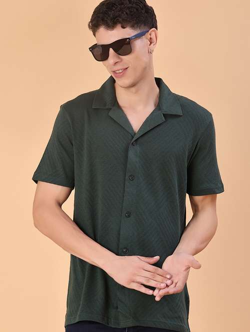 - » men self design short sleeve regular fit casual shirt