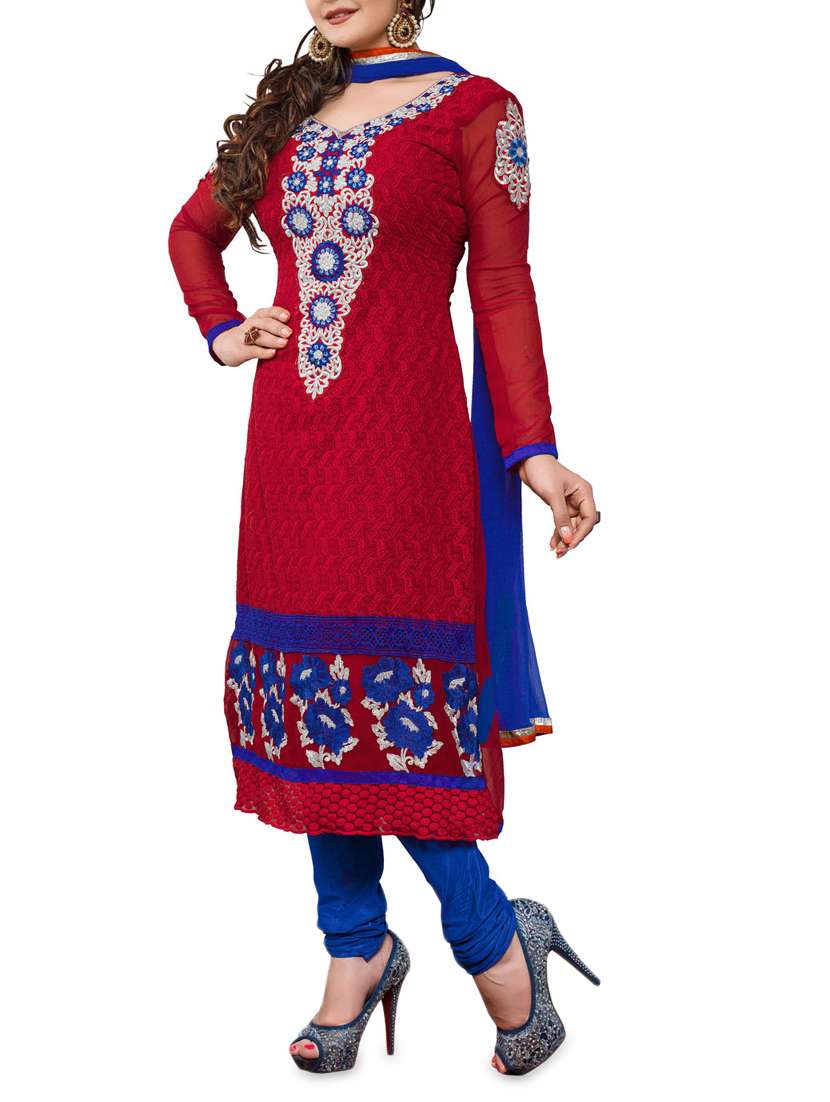 - » embroidered maroon semi-stitched suit set