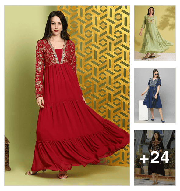 globus women blue ethnic block print mandarin collar flared hem tiered maxi fusion dress