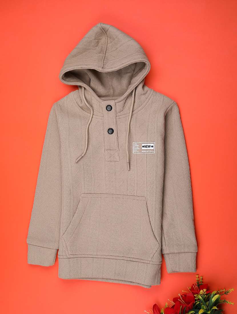 boys solid long sleeve hooded sweatshirt