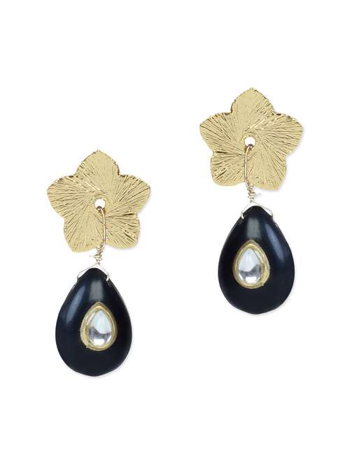 - » floral black kundan drop shape hanging earring