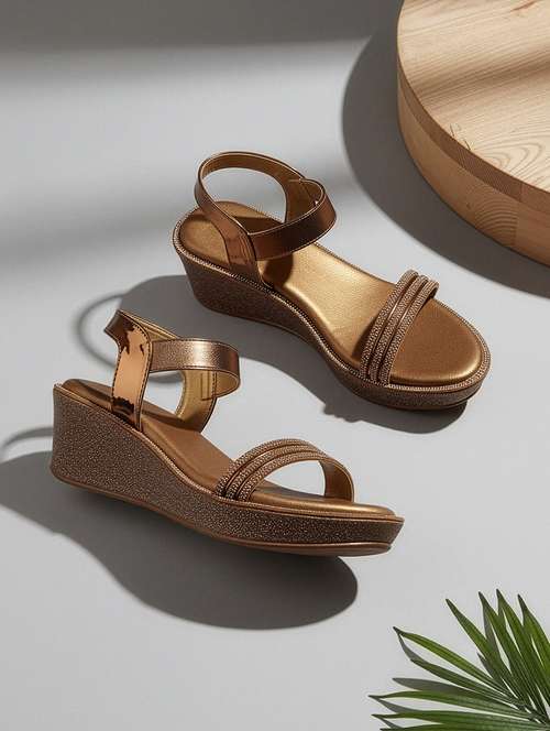 women embellished slip on platform wedge