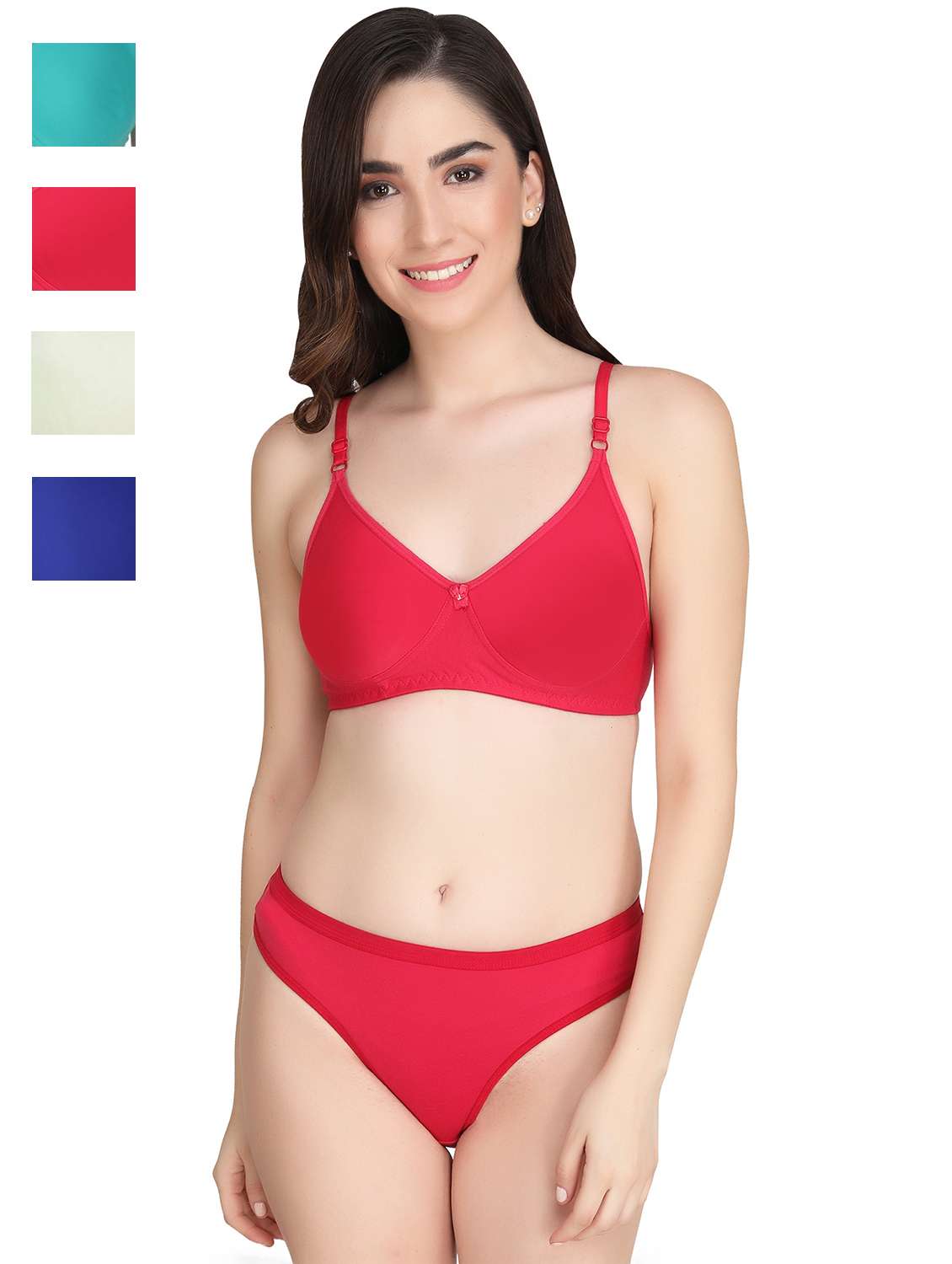 Liigne Women Everyday Non Padded Bra Panty Set (Pack Of 4) - This Lingerie Set Made of Pure Cotton