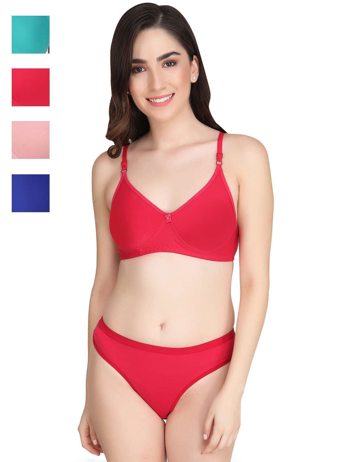 Liigne Women Everyday Non Padded Bra Panty Set (Pack Of 4) - This Lingerie Set Made of Pure Cotton