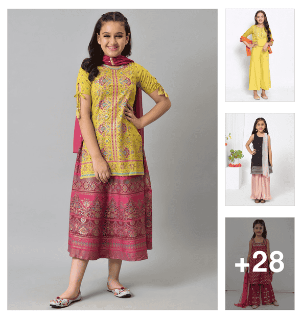 girls embroidered kurta and salwar set with dupatta