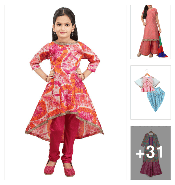 girls embroidered kurta and salwar set with dupatta